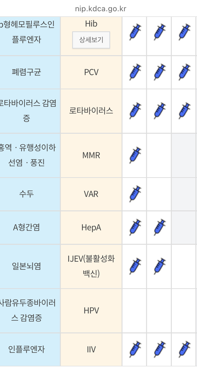 - 만 0세와 만 1세 : 5회 방문 (독감 별도)